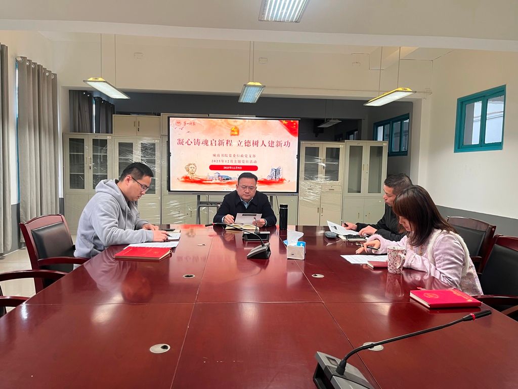 12月9日,城南书院党委行政党支部在艺术楼会议室开展“凝心铸魂启新程 立德树人建新功”主题党日活动。支部全体党员参加,会议由支部书记聂凯主持。