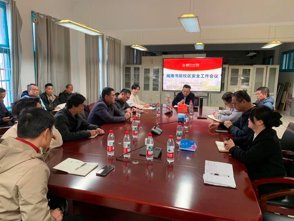 为切实推进城南书院校区提质改造工程顺利实施,全面强化假期安全保障工作,2026年1月15日上午,城南书院校区管委会办公室组织召开校区安全工作专题会议。城南书院党委书记、校区管委会办公室主任鲁云生主持会议并作讲话,城南书院党委副书记蔡海军,“毛泽东与第一师范纪念馆”副馆长张颖,后勤处副处长刘青,基建处副处长陈龙,以及保卫部、物业公司和各施工单位负责人参加会议。
